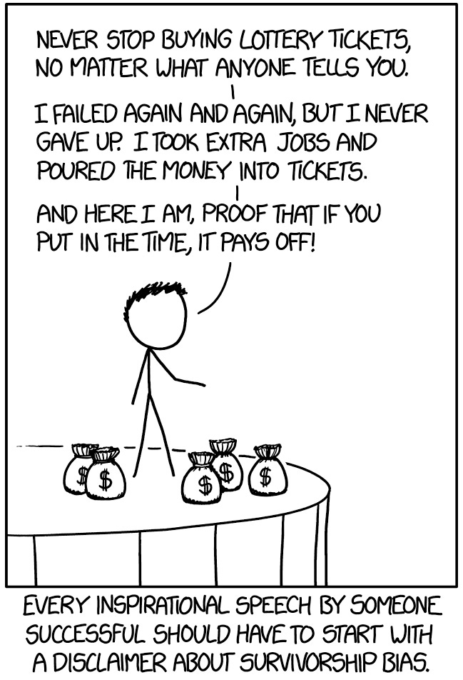 Zu so viel Einsicht kommt SRF leider nicht. Die Story gewinnt. Auch der Survivorship Bias könnte wunderbar in die Doku zu Lotterie-Gewinnern einfliessen. Das, was die Lotto-Gewinner gemacht haben, muss zu ihrem Lotto-Gewinn geführt haben!