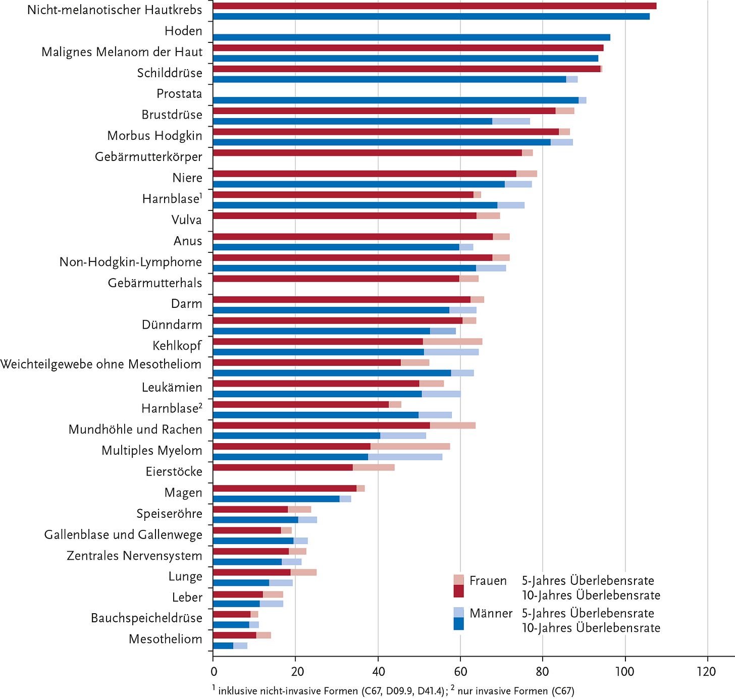 Wenn die Wahrscheinlichkeit, dass eine Frau mit Lungenkrebs in 5 Jahren noch lebt, rund 0.25 oder 25% beträgt, ist nicht jede Frau mit Lungenkrebs nach 5 Jahren zu 75% tot. Die Wahrscheinlichkeit ist ein Durchschnittswert, der sich aus der Streuung der Krankheitsverläufe ergibt.